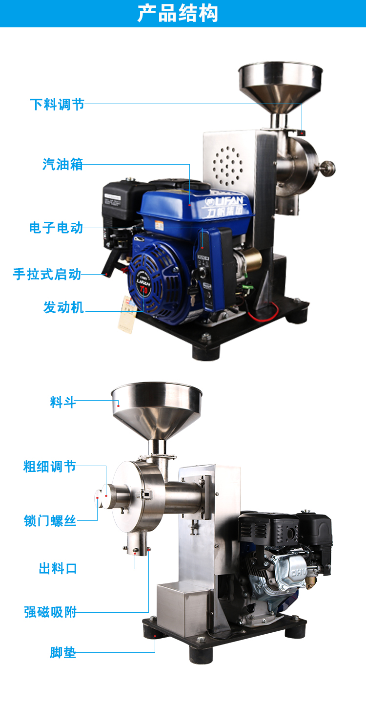乐鱼官网网页版_乐鱼(中国)官方汽油磨粉机工厂直供价:3600元 广州市乐鱼官网网页版_乐鱼(中国)官方机械通过质量监督检验合格产品,本机上市以来客户操作使用上所发现的一些实际问题, 我司组织研发、技术队伍在设计、材质、性能、外观,进行反复试验,多次改进、改良,不断提高机器零配件 加工工艺,不断改善机器装配工艺流程,基本保持1.5—2年对产品更新换代一次,目前在市场上的主打产品为 第三代机型,真正、彻底解决磨粉不够细腻、卡机、产量低、噪音大等其他公司同类设备的通病,确保进出料 顺畅,噪音小,使机器能满足多数客户的使用需求。 2012年7月,乐鱼官网网页版_乐鱼(中国)官方机械为满足流动作业经营者的使用要求,研发制造了汽油机磨粉机,即“汽油发动机 +磨粉机”,不需连接电源,通过汽油发动机传动,适合流动式磨粉作业。本机可通过控制发动机油门的大小, 调节转速。 ![]() ![]() 我公司对配件的选用一直坚持更优、更好的原则,坚决杜绝劣质、低价的配件。本机整机(含汽油机)均保修一年。 我公司是生产厂家,相对于其他贸易商或者网店,我公司有强大的技术、人员保障和完善周到的售后服务体系,为 广大客户提供最优质的产品和终身的维修售后服务,解除客户的后顾之忧:保修期内属于质量问题,公司免费提供 配件和维修服务;超出保修期限或保修范围,公司也仅收取配件成本费。 ![]() 主要性能特点: 1、机身由304不锈钢铸造和精密加工而成,美观大方、不生锈,符合GMP要求。 2、更加卫生: (1)加装了4个强磁,吸附机器运转过程中磨片磨损的铁粉,干净卫生; (2)机器磨粉腔内不用涂抹润滑油(脂),不会对所加工物料造成污染,保证了食品、药物的安全卫生。 3、提高了机器零配件加工工艺,改进了机器装配流程,噪音低、进料通畅、下料更快、不堵料,磨粉细腻、无粉尘。 4、连续投料式生产,效率高。 5、操作简单方便。 (1)只需要将动磨片套上连轴器,轻轻旋转一下就可以把动磨片安装好。 (2)操作使用机器时,调节磨粉粗细更轻松省力。 (3)磨粉腔内物料余留少。 (4)进料快慢和出料粗细均可调节。 ,特别适用流动作业。加工范围广: (1)各种粮食:芝麻、核桃、大米、黑米、黄豆、绿豆、花生、莲子、玉米、高粱、大麦、荞麦、燕麦等; (2)各种干性药材:杏仁、茯苓、红枣、芡实、枸杞、薏仁、山楂、淮山、首乌、红豆、阿胶、乳香、菟丝子、当归 、党参、黄芪等。 工作原理: 磨粉机靠两块布满齿槽的磨片相对磨动、运转,从而将物料研磨成粉末。 7、友情提示:我司是全国最早开发汽油机的生产厂家,随后一段时间,国内一些小作坊、小型加工厂,先后仿制我司